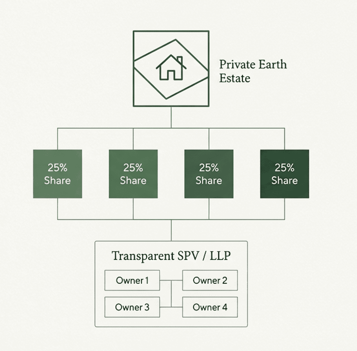 Private Earth enables genuine, legal ownership of premium farmland through an SPV (Special Purpose Vehicle) or LLP (Limited Liability Partnership). This is not a timeshare model.